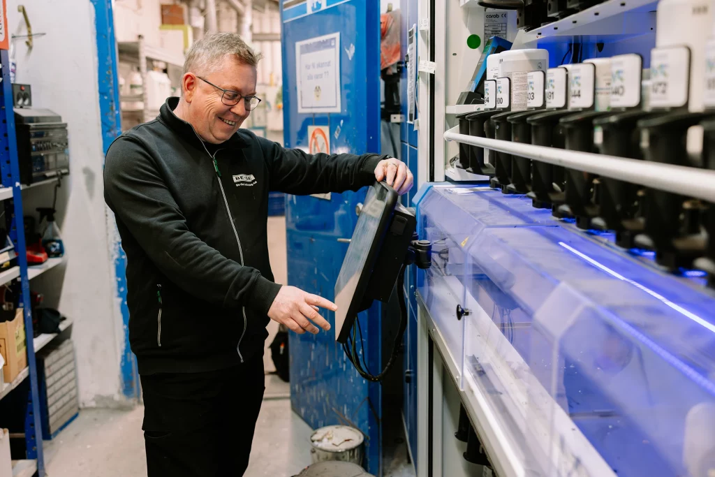 Med en modern Moonwalk färgblandningsmaskin installerad på anläggningen kan Be-Ge Lackering ABs Billackering säkerställa att det blir samma kulör på reparationen som på bilens originallack. Vid inmatning av färgkod kontrollerar och mixar Moonwalk ihop färgnyansen med en precision på 0,01 gram. Processen är både kvalitetsstärkande och tideffektiviserande för personalen.